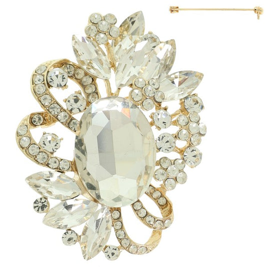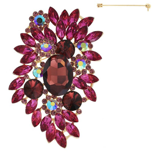 Jeweled Crystal Flower Design Brooch