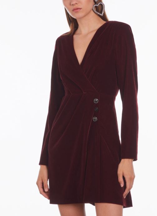 Long Sleeve Velvet Mini Dress with Rhinestone Button Accent