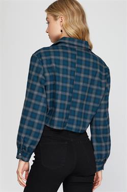 Long Sleeve Woven Plaid Buttondown Shirt with Front Tie Detail