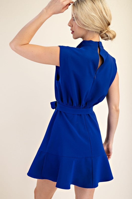 Sleeveless Cowl Neck Fit and Flare Mini Dress with Ruffle Hem