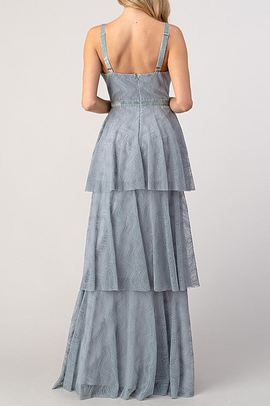 Sleeveless Ruffled Layer Long Formal Lace Dress