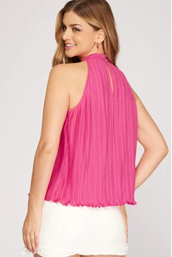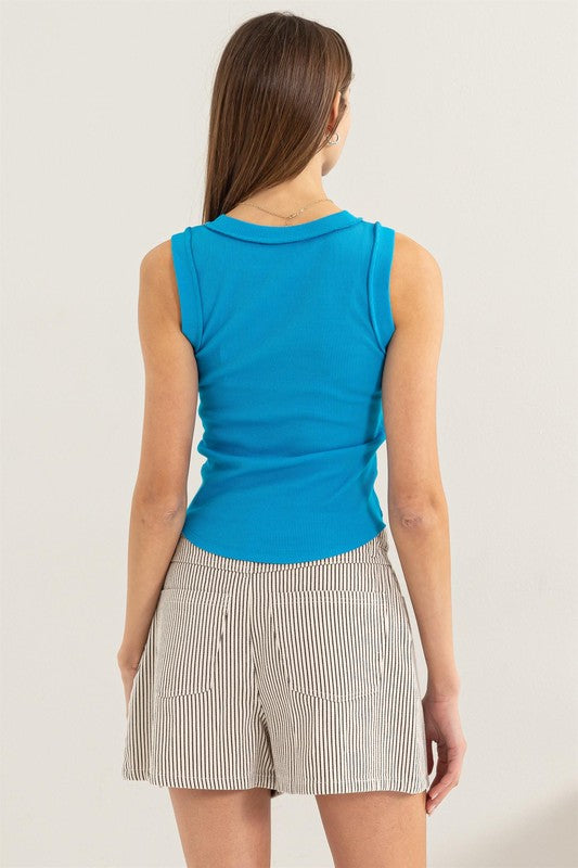 SLEEVELESS RIB KNIT SWEATER SHORT DRESS WITH NECK BAND
