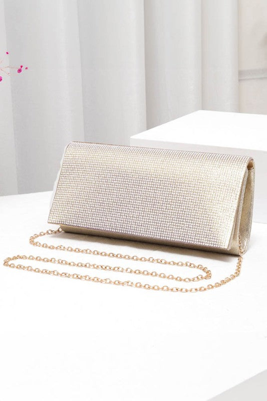 Bling Fron Clutch 9.5x4x2 with Detatchable Strap a Slip Pocket and Magnetic Closure
