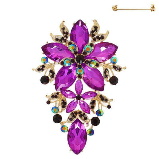 Vintage Inspired Crystal Rhinestone Floral Brooch Pin