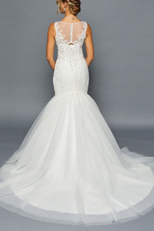 Wide Strap V Neck Mermaid Wedding Dress with Court Train