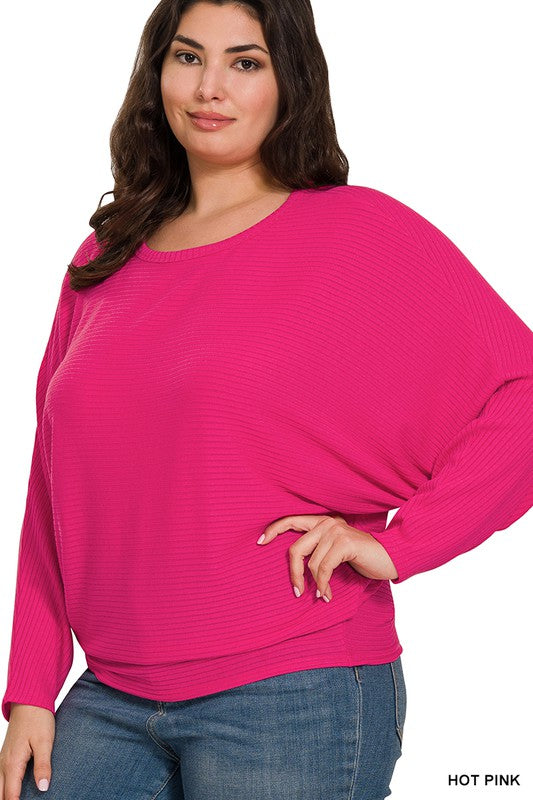 Curvy Ribbed Dolman Long Sleeve Boat Neck Sweater