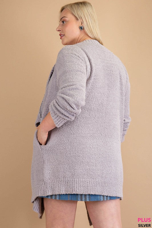 Curvy Long Sleeve Soft Popcorn Thread Front Flowy Open Cardigan