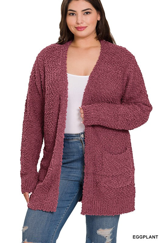Curvy Long Sleeve Popcorn Sweater Cardigan