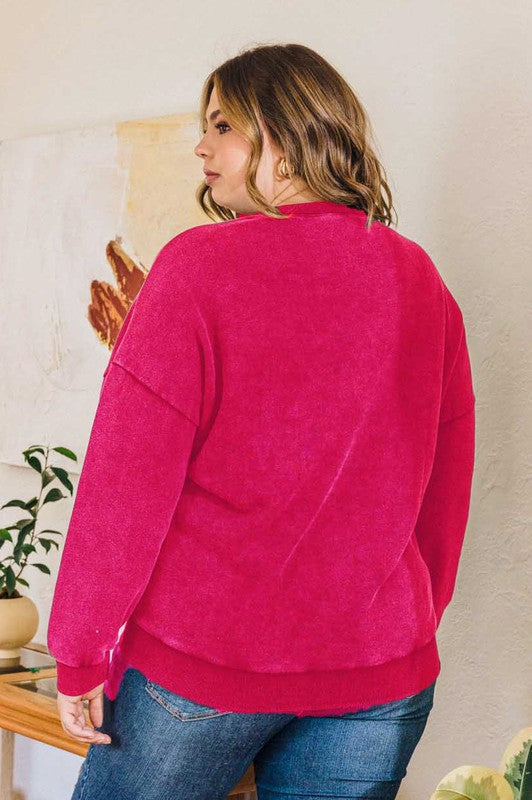 Knit Washed Pullover Featuring Round Neck with Ribbed Band Smiley Face Print Long Sleeve and Oversized Fit Sweatshirt