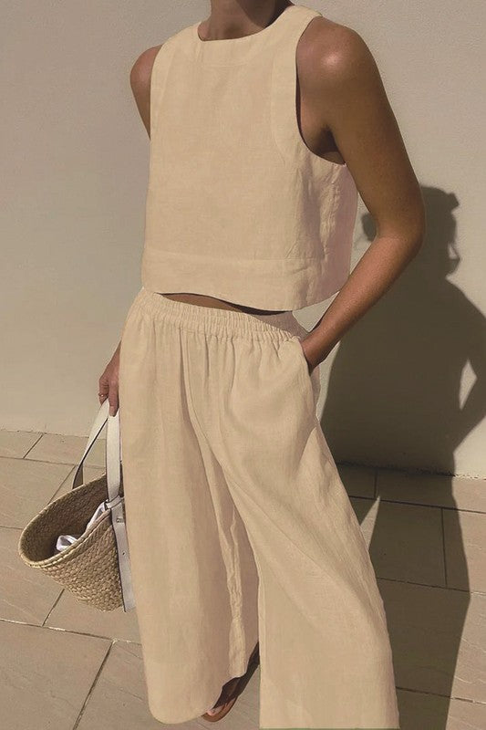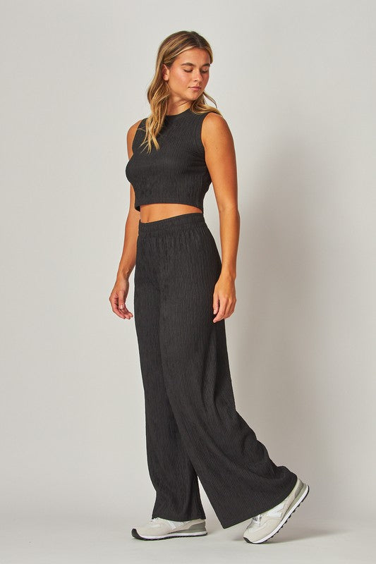 2 Piece Set with Sleeveless Crop Top and Wide Leg Pants