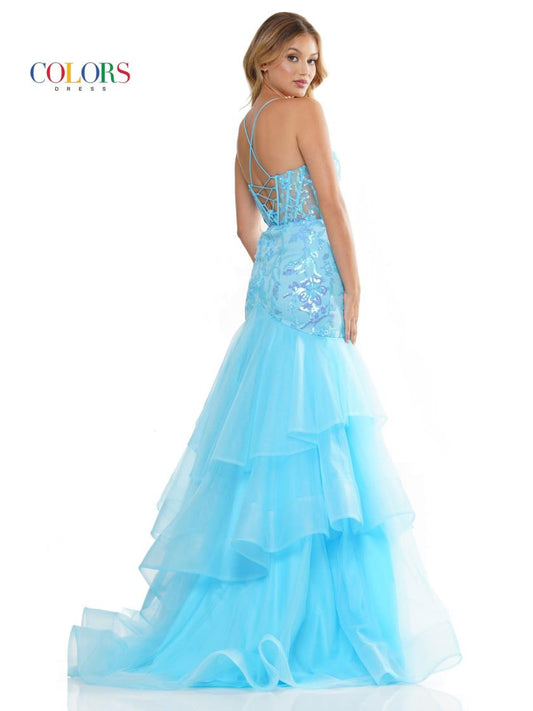 Spaghetti Strap Sequins and Mesh Long Formal Mermaid Dress