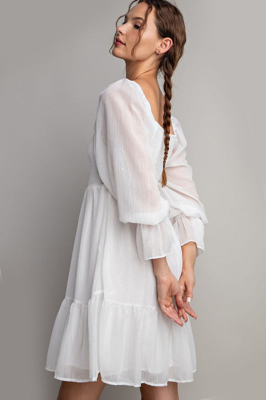 Off the Shoulder Short Bishop Sleeve Mini Dress