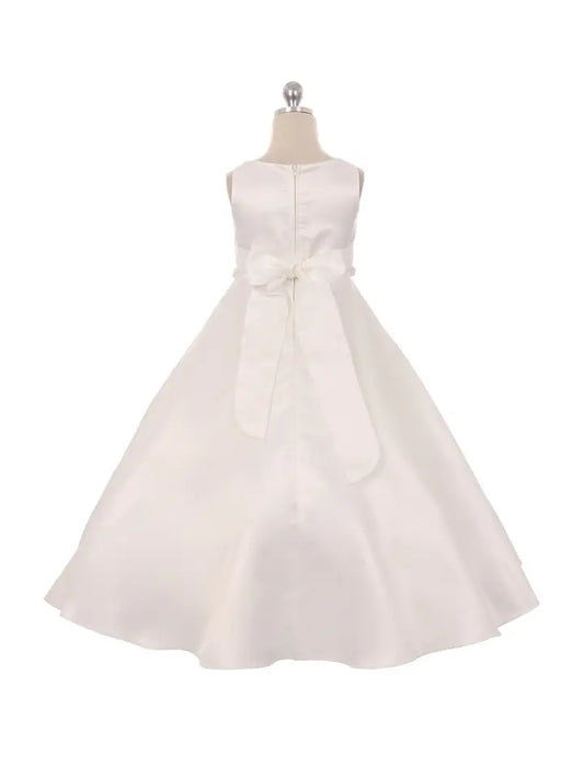 Girls Sleeveless Poly Silk A Line Long Formal Fully Lined Dress with Organza Sash