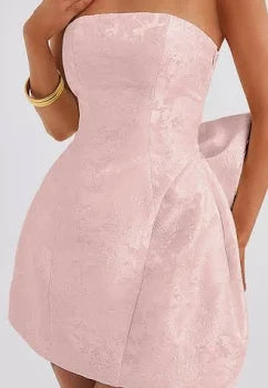Strapless Jacquard Tube Mini Dress with Bow Back