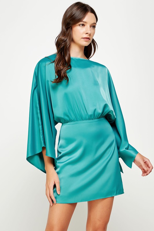 Techno Crepe Short Puff Sleeve A Line Mini Dress