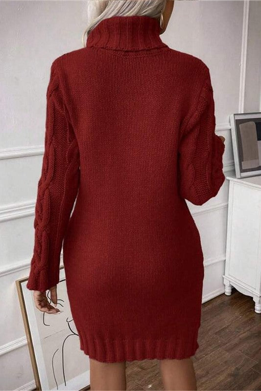 Long Sleeve Classic Turtleneck Cable Knit Sweater Dress