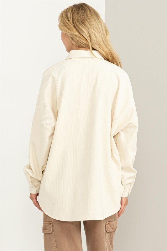Long Sleeve Boyfriend Corduroy Shacket with Button Closure