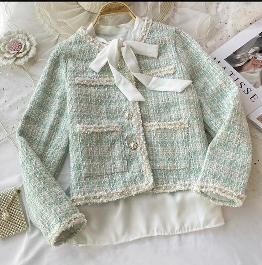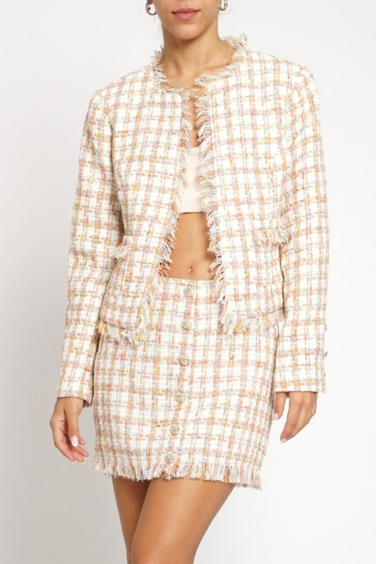 Stunning Tweed Blazer with Gold Buttons and Faux Pockets and Single Button Closure