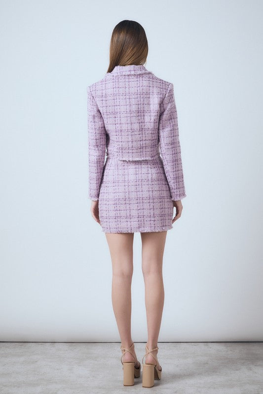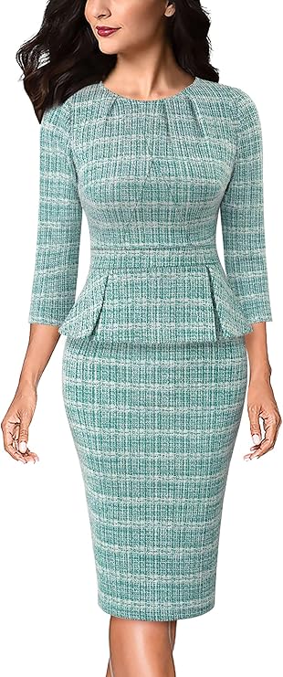 3/4 Sleeve Tweed Button Closure Blazer Dress with Peplum