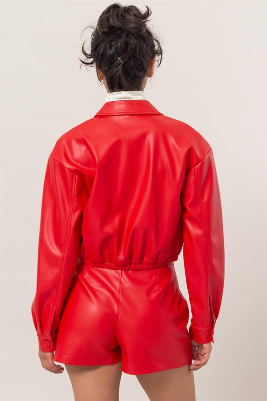 Long Sleeve Faux Leather Trench Jacket with Waist Belt