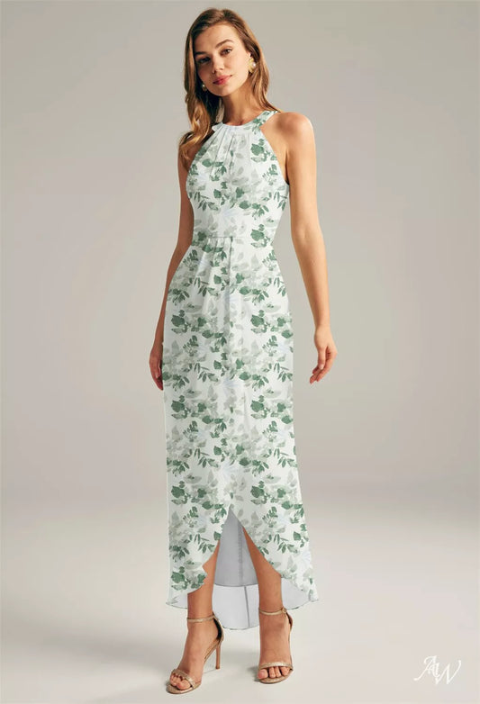 Verdant Wilds Green Floral Chiffon Formal Maxi Dress