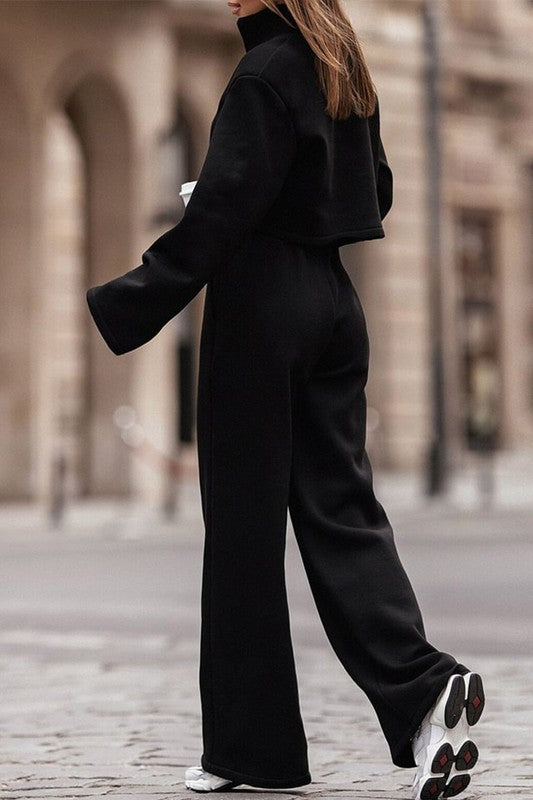 SOLID CRINKLE CARDIGAN 3 PIECE PANT SET
