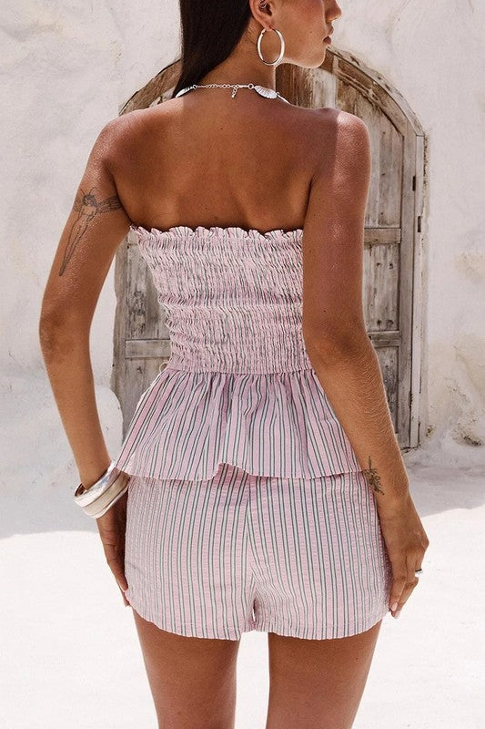 Striped Bandeau Top with Tie Front With Matching Shorts