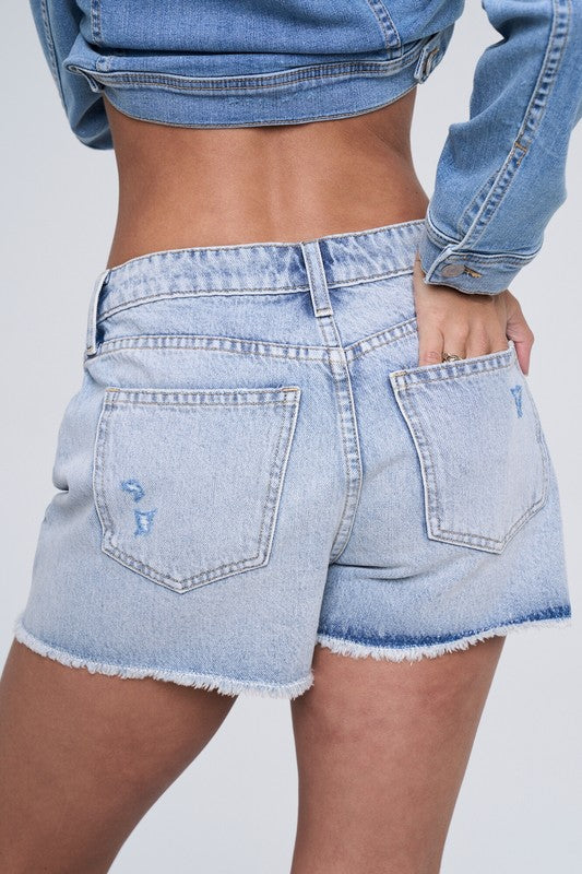 Curvy High Rise Button Fly Exposed Cuff Denim Shorts