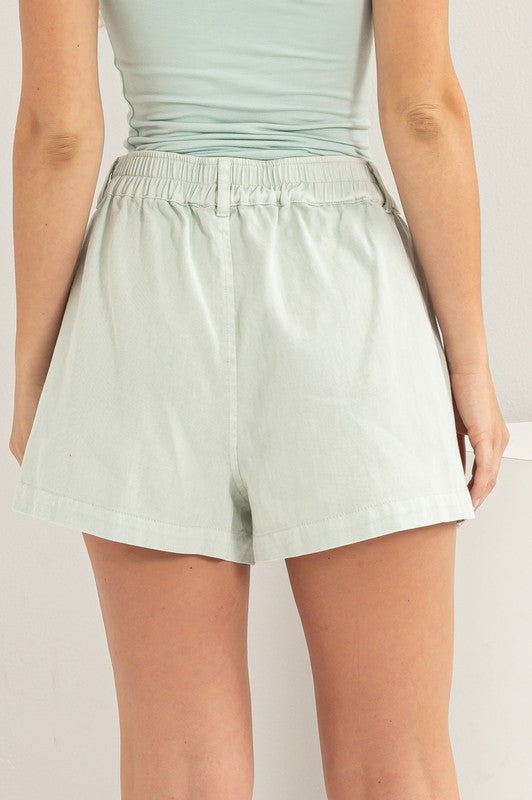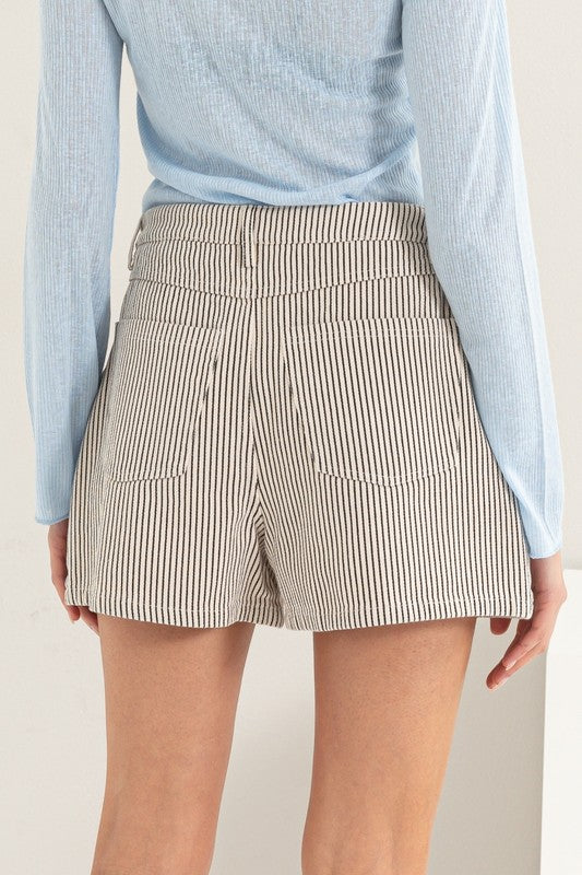 High Rise 90's Vintage Denim Two Tone Shorts with Cross Fly