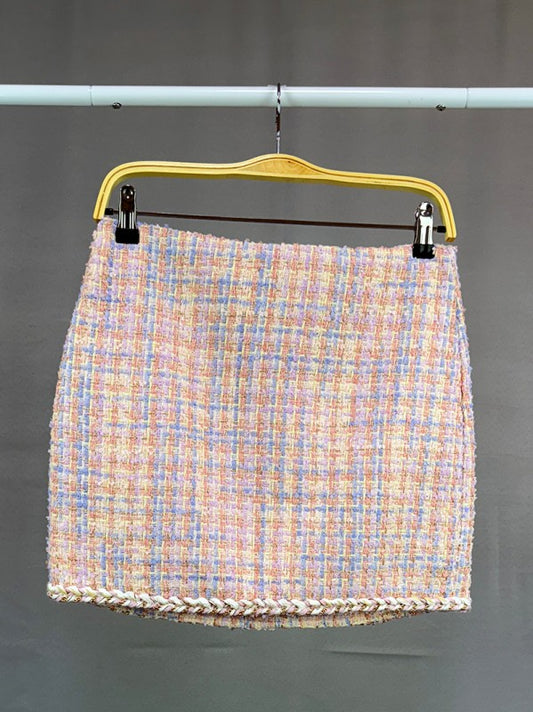 Side Slit Tweed Mini Skirt