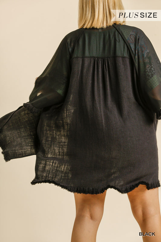 Black Curvy Linen Blend Kimono