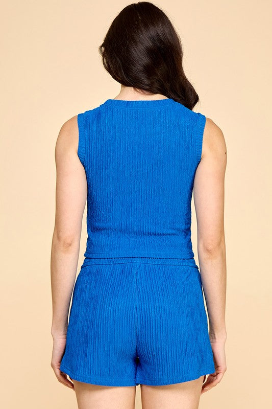 2 Piece Crinkle Crop Top and Short Set with Side Pockets