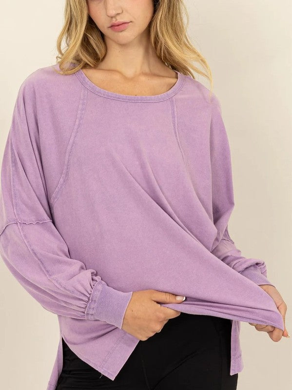 EMBRACE CASUAL COMFORT WITH THIS OVERSIZED LONG SLEEVE TOP WITH SLIT.