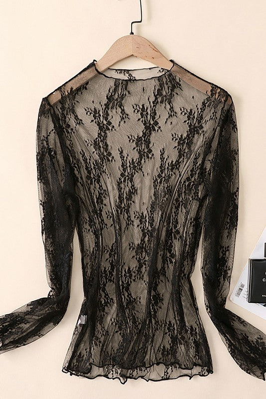 Long Sleeve Lace High Neck Top