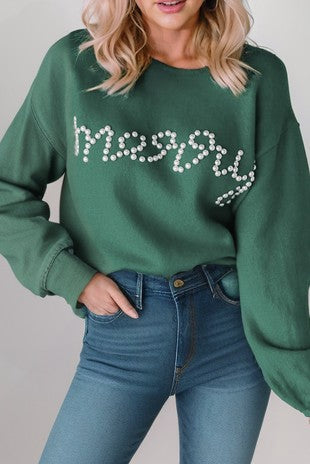 Long Sleeve Pearl Beaded Merry Casual Sweater