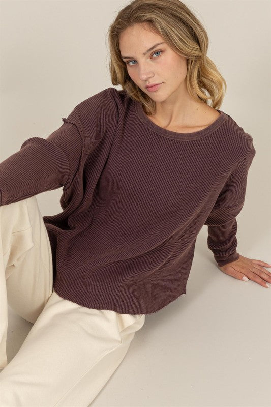ELEVATE YOUR CASUAL STYLE WITH THIS RELAXED WAFFLE KNIT TOP. FEATURING A