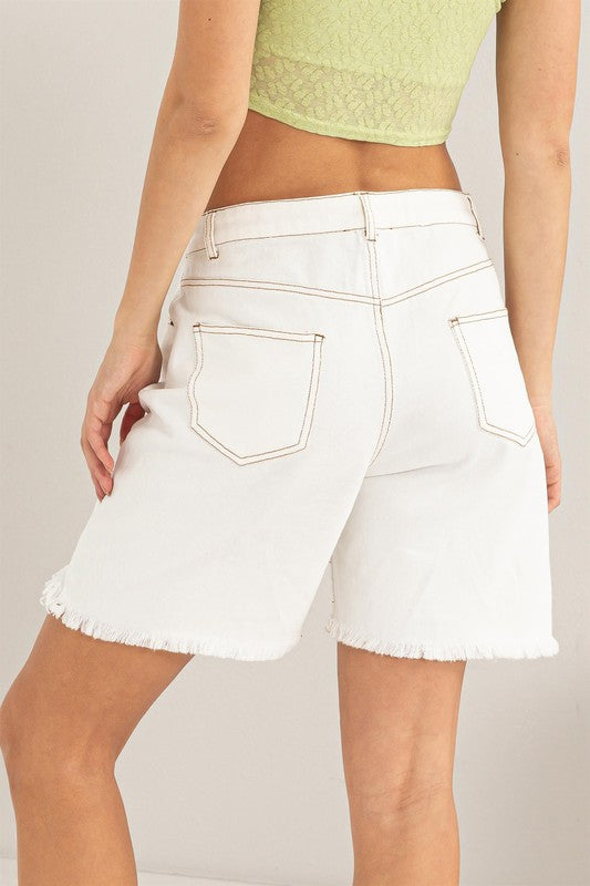 THESE DENIM SHORTS WILL BECOME YOUR NEW GO-TO BOTTOMS. THEY FEATURE A