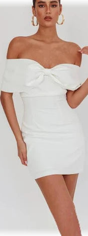 Off Shoulder Mini Fit and Flare Dress with Detachable Bow