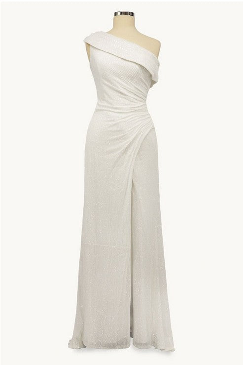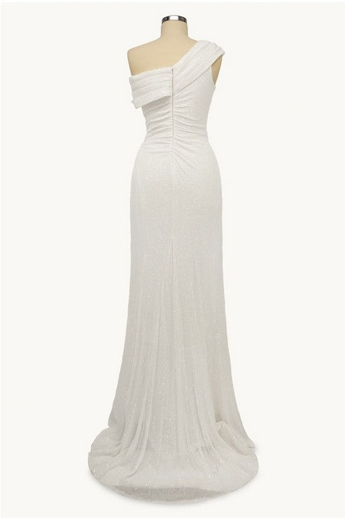 Off the Shoulder Sequins Long Fitted Dress with Side Slit