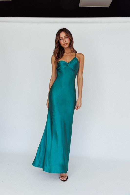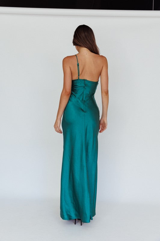 One Shoulder Adjustable Spaghetti Strap Fitted Maxi Dress with Zip Back Closure
