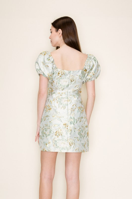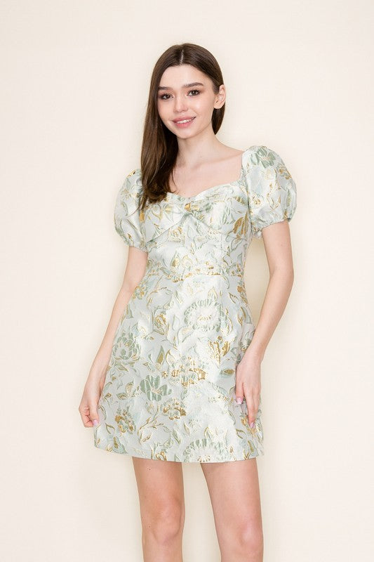 Puff Short Sleeve Jacquard Mini Dress