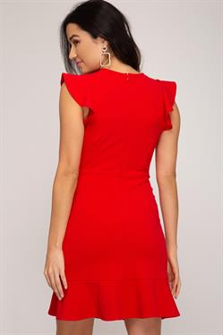 Ruffled Cap Sleeve Knit Short Dress with Flounce Hem