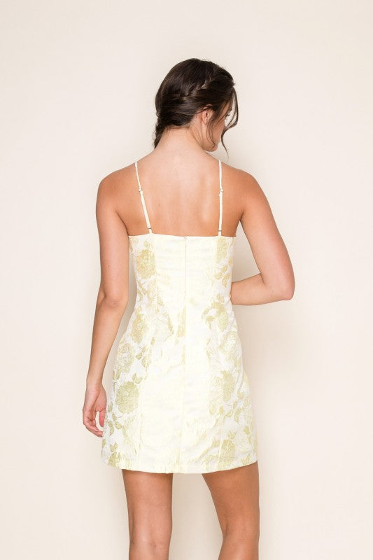 Sleeveless Floral Jaxquard Satin Mini Dress