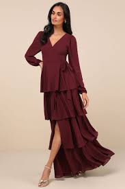 Stunning Long Sleeve Chiffon Tiered Maxi Dress